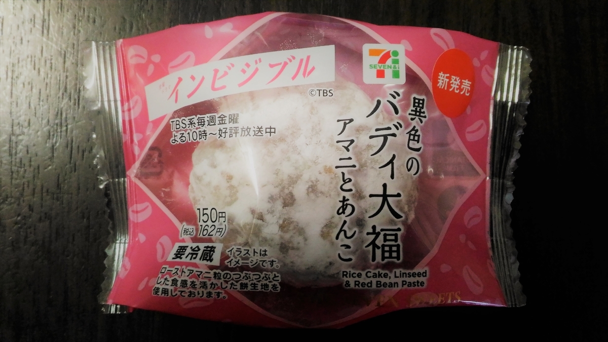 ドラマやアニメに興味がないので、こういったコラボ商品にまったく魅力を感じないのですが、アマニといった珍しい物を使っていたので買ってみました。アマニは栄養価が高く、最近話題のスーパーフードです。こういった物をすぐに取り入れるあたりはさすがコンビニだなと感心します。味はごまとほとんど変わりません。香ばしいごまのような風味がします。どうせならアマニあんとか作って欲しかったですね。